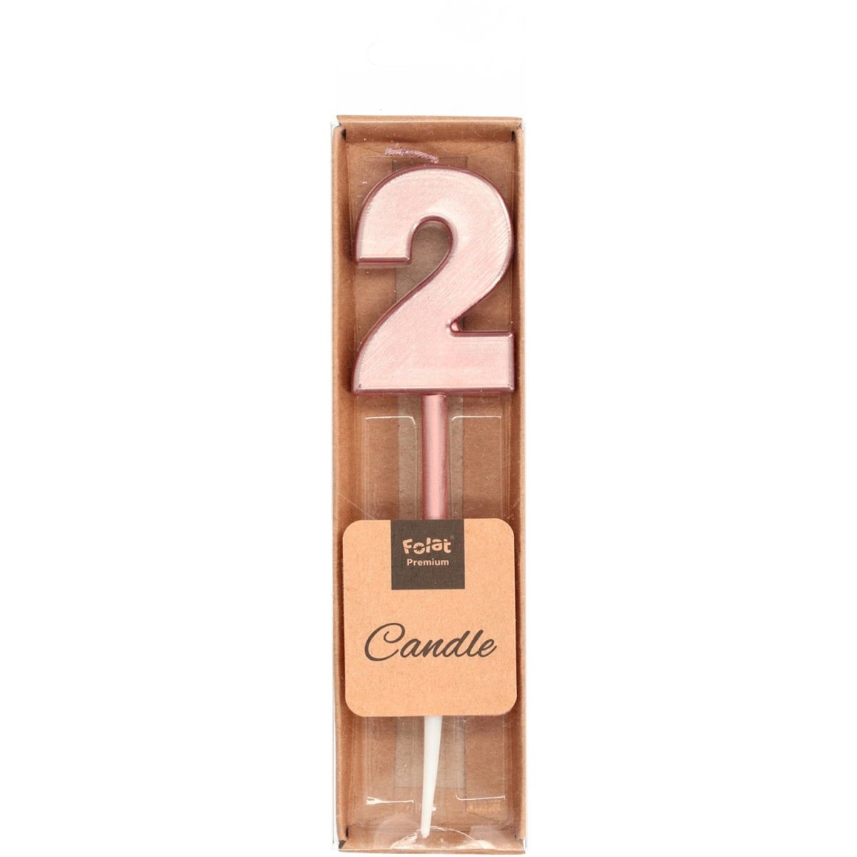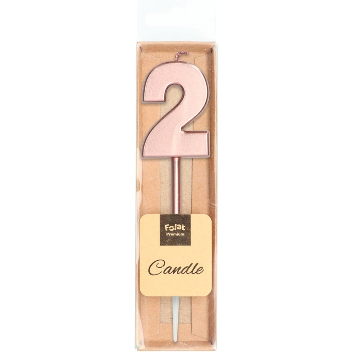 Lys nummer 2 Rose Gold Metallic. Indhold: 1 lys. Farve: Rosaguld. Kan f.eks. bruges ved følgende festlige lejligheder: Fødselsdag, jubilæum og børnefødselsdag. Mål: 14 cm høj. Varen er fremstillet af voks.
