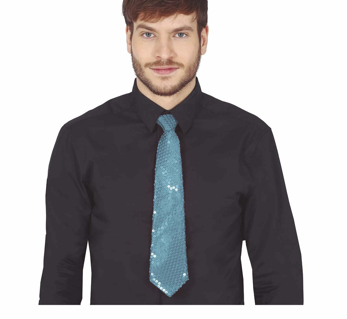 Lyseblå slips med pailletter 35 cm