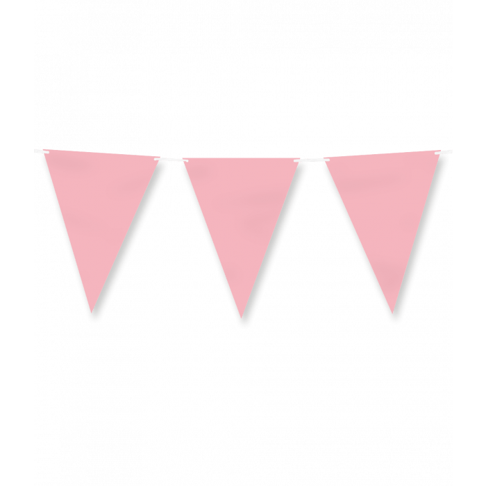 Papirflagline - Pastelrosa er den perfekte flagline til en fest, hvor farven pastelrosa er temaet. Denne papirflagline har en diskret længde på 6 meter og passer perfekt sammen med andre pastelfarvede ting som konfetti, duge, tallerkener, kopper, servietter og snackbokse. Præsenter disse ting sammen, så det med det samme står klart for kunden, hvad denne kollektion består af. Flagene er lavet af papir, hvilket gør det til et miljøvenligt valg!