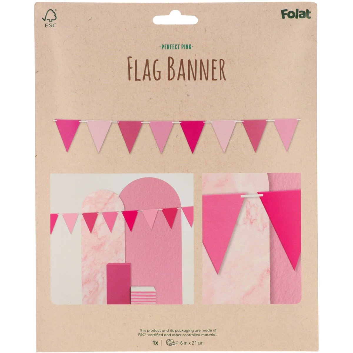 Smuk pink er også festlig! Flagline - Perfect Pink - 6 meter. Indhold: 1 flagline. Kan f.eks. bruges til følgende fester/anledninger: Fødselsdag, temafest, pigefødselsdag. En flagline med smukke lyserøde flag i fire forskellige lyserøde nuancer. Der er 16 flag på en linje. Flagene måler 17 x 21 cm. Linjen er lavet af hvidt polysterbånd. Flagene kan skubbes individuelt over båndet. Denne vare er fremstillet af FSC-papir.