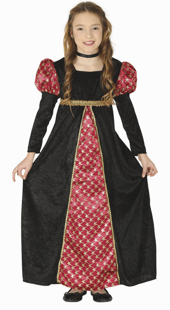 Middelalderkjole barn sort rød