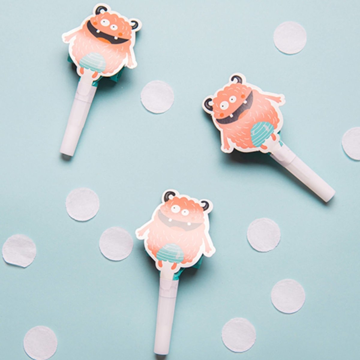 Rullende tunger Monster Bash 24cm - 6 stk. Indhold: 6 rullende tunger. Farve: Flerfarvet. Kan f.eks. bruges til følgende fester/anledninger: Børnefødselsdag. Et horn måler 24x4 cm, og dekoren på det er 8x5 cm. Artiklen er lavet af papir. Artiklens mundstykke er af plast.