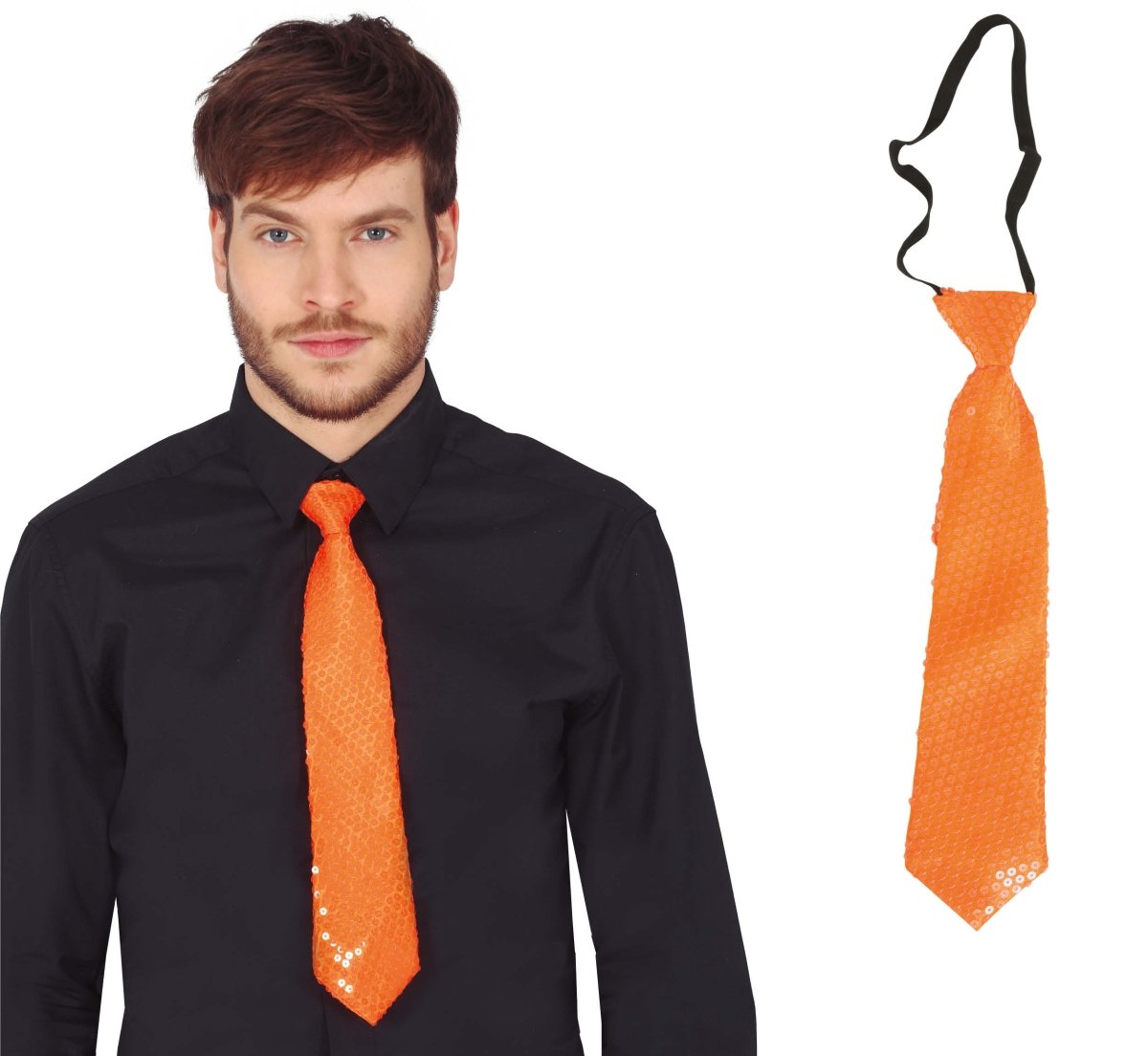 Neon orange slips med glitter 37 cm