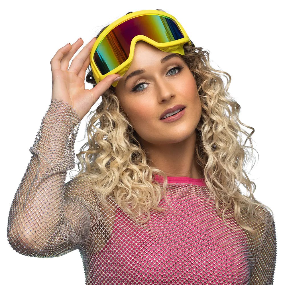 Denne lyse neongule partyskibrille er det perfekte tilbehør til at sætte kulør på ethvert outfit. Den markante neonfarve og det seje design gør partyskibrillerne til et ægte blikfang. Et must-have for alle festaber, der vil skille sig ud på en festival, eller som vil fuldende deres 90'er-karnevals-skioutfit.