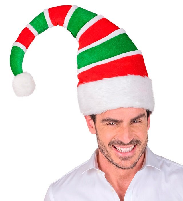 Fejr højtiden med stil med denne plyndrede nissehue i nissestil. Kombinationen af grøn, rød og hvid giver huen et muntert og klassisk julelook. Lavet af blødt materiale for ekstra komfort - ideel til julefrokoster, fotoshoots eller bare for at komme i julestemning.