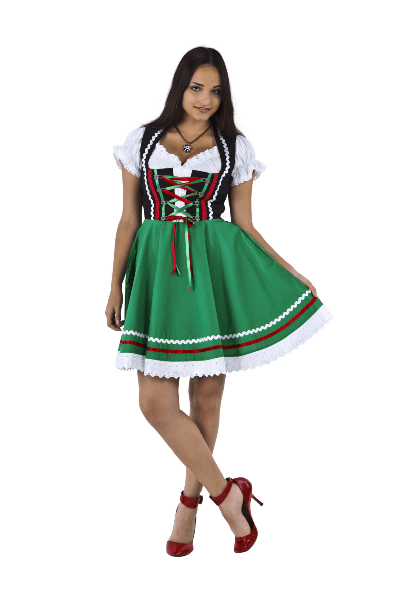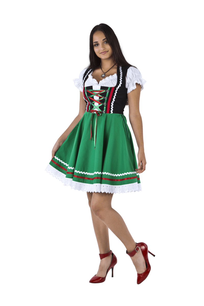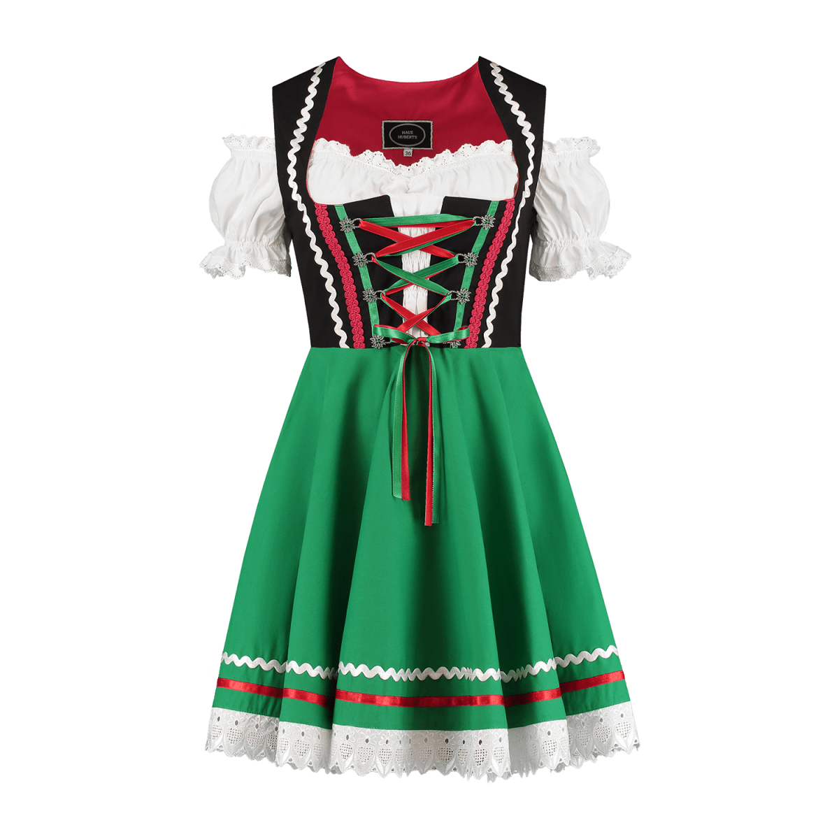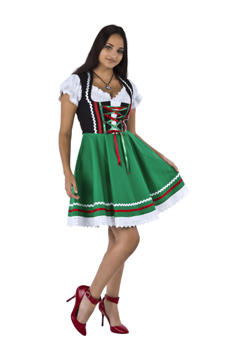 Mini-dirndl, 2-delt, inkl. kjole og justerbar Carmen-bluse i hvid, begge lavet af 100% bomuld. Fuldt foret. Inkl. overdel med bånd af satin. Kjole dekoreret med forskellige og afsluttet med hvid blonde forneden på skørtet. En stiklomme i cirkelskørtet og YKK-lynlåslukning. Skørtelængde ca. 50 cm (størrelse 34-46), skørtelængde 55 cm (størrelse 48-52). Fremstillet af kvalitetsstoffer. Vores model er 1,65 m høj og bruger størrelse 36. Fås i størrelserne 34 til 46.