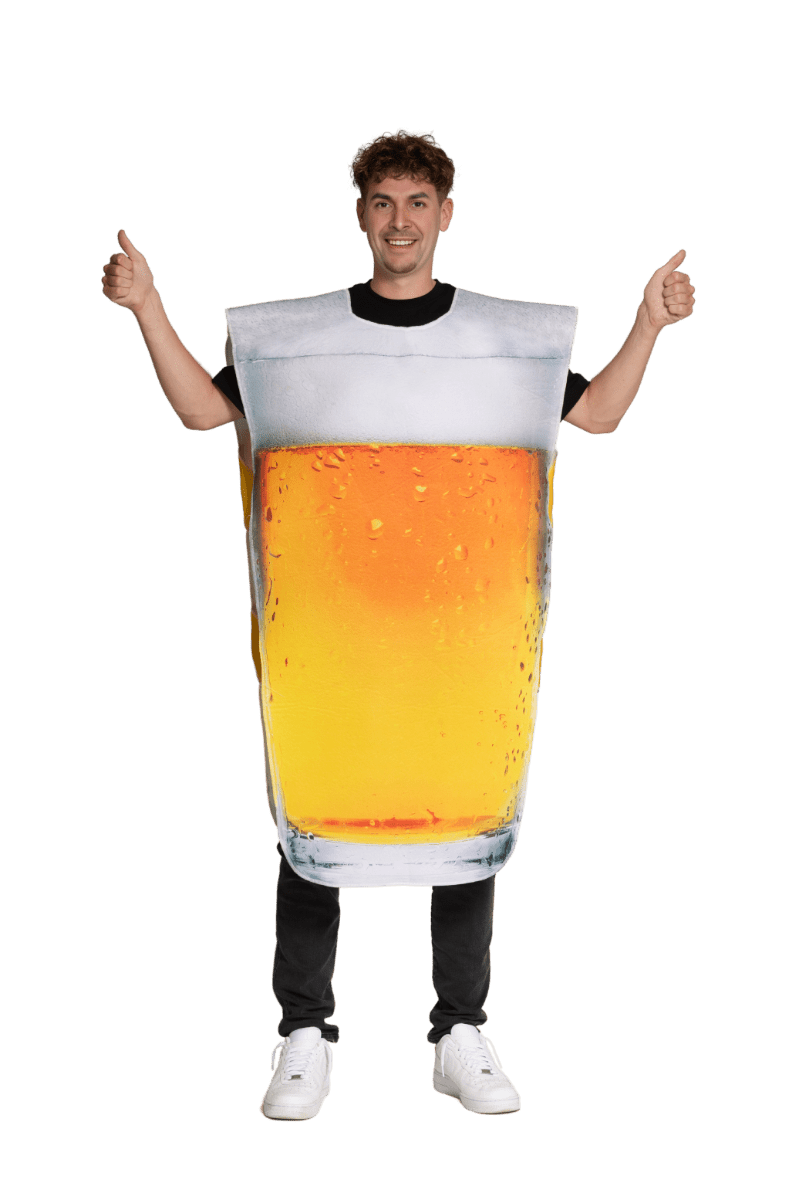Skål for en vellykket fest med dette sjove ølglas-kostume! Ideelt til karneval, forkerte fester, temaaftener eller festivaler, hvor humor og sjov er i højsædet. Takket være det lette materiale og den nemme pasform er kostumet behageligt at have på, selv under lange festaftener.