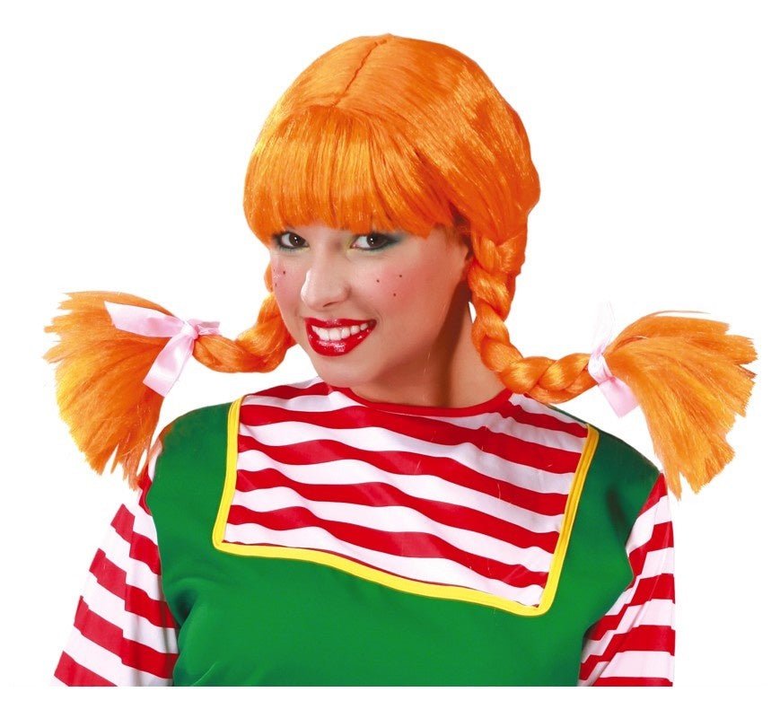 Indhold: orange paryk med sløjfer og bøjelige fletninger