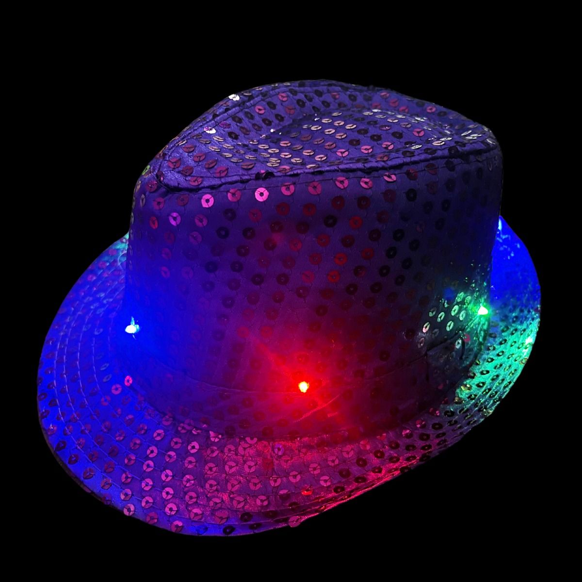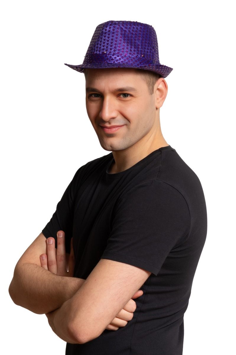 Fuldend ethvert outfit med disse funklende lilla paillethatte! Hver hat er dekoreret med glitrende pailletter og har indbygget lys for en ekstra festlig effekt. Ideel til udklædningsfester, karneval, festivaler eller nytårsaften.