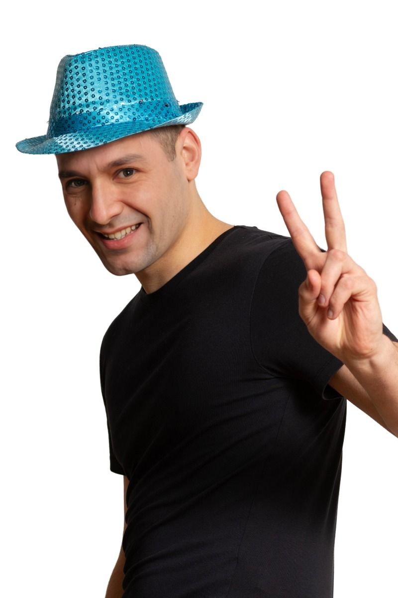 Paillethat turkis med lys inkl. batterier