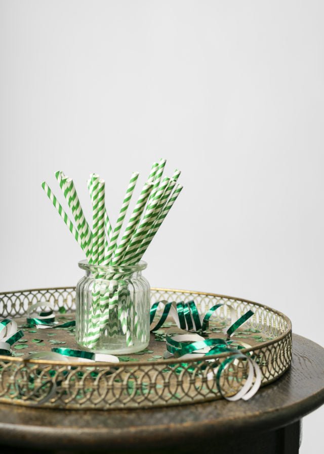 Papirsugerør grøn stribet 19,7 cm 20 stk