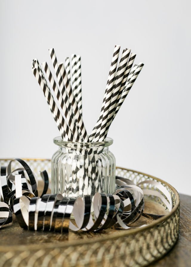 Papirsugerør sort stribet 19,7 cm 20 stk