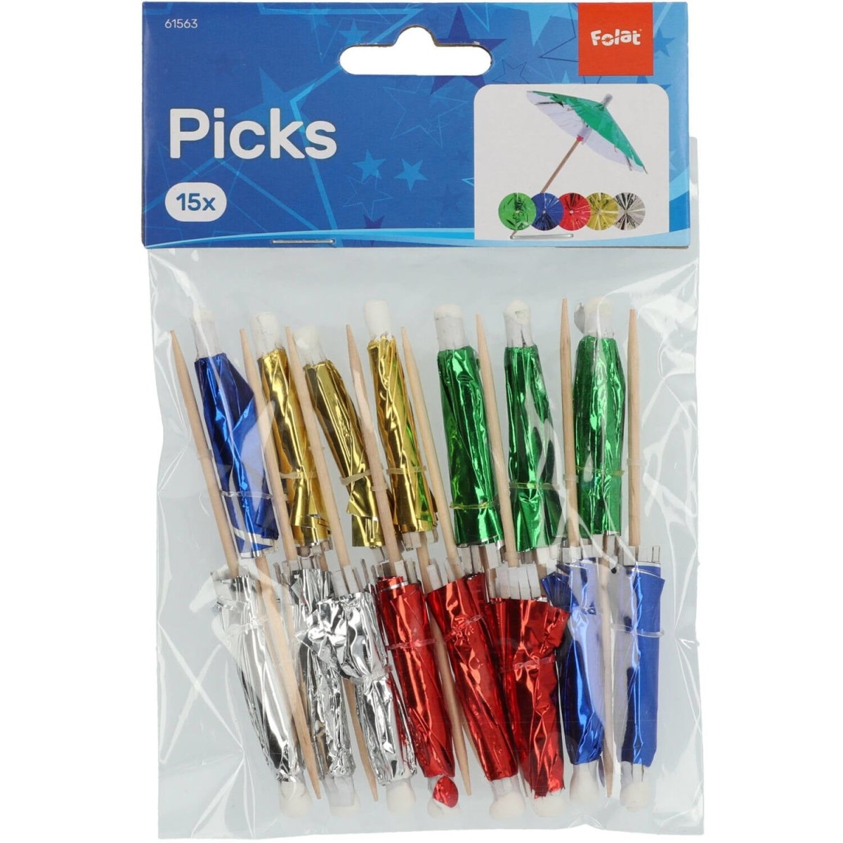 Parasolstikkere Metallic Colours - 15 stk. Indhold: 15 tandstikkere. Farve: Flerfarvet metallic. Kan f.eks. bruges til følgende fester/anledninger: fødselsdag, børnefødselsdag, temafest. Disse tandstikkere er 14,5 cm høje. Artiklen er lavet af bambus.