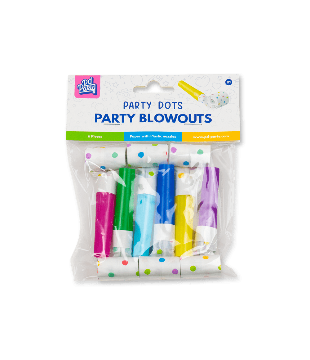 Bring øjeblikkelig energi til enhver fest med Party blowout - Party Dots! Disse festlige rullende fløjter kommer i det karakteristiske, farverige prikmønster og giver den rigtige festlyd, der gør både børn og voksne glade. Ideel til fødselsdage, goodiebags, borddækning eller sjove gruppebilleder.