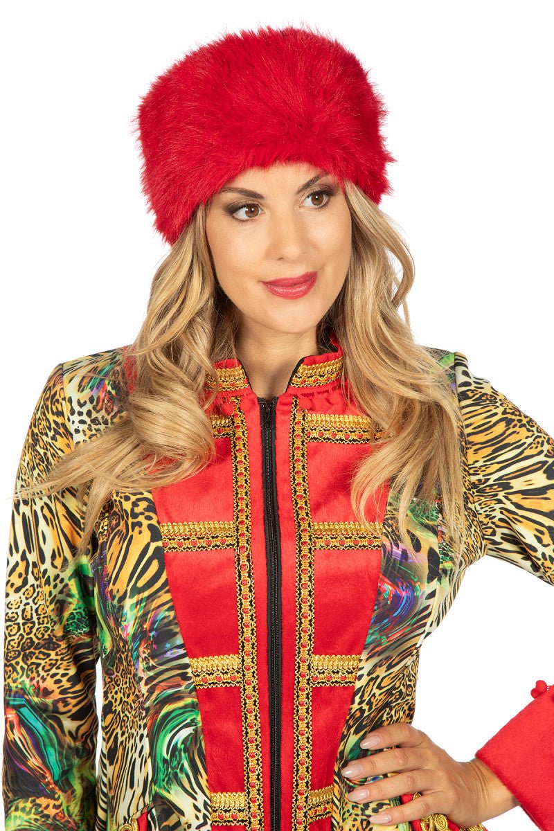 Blødt pandebånd i rød pels. Perfekt som tilbehør til temafester, udklædningsfester eller vintertøj.