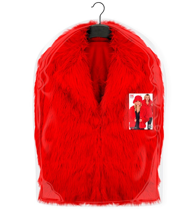 Denne pjuskede pelsfrakke til kvinder i en markant rød farve er et stilfuldt blikfang til enhver fest. Perfekt til karneval, temafester, 80'er/90'er-fester eller en uartig fest.