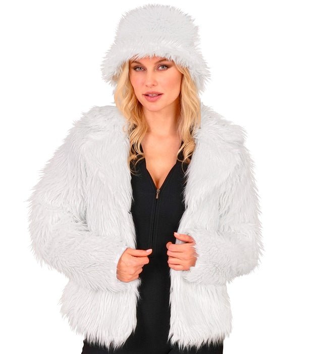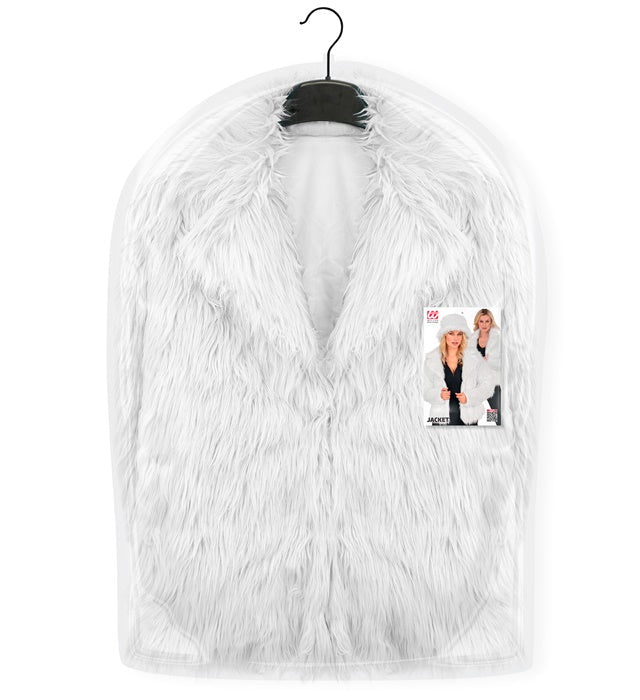 Denne pjuskede pelsfrakke til kvinder i hvid er et stilfuldt og elegant blikfang. Perfekt til karneval, temafester, 80'er/90'er-fester eller en fræk fest med en luksuriøs følelse.