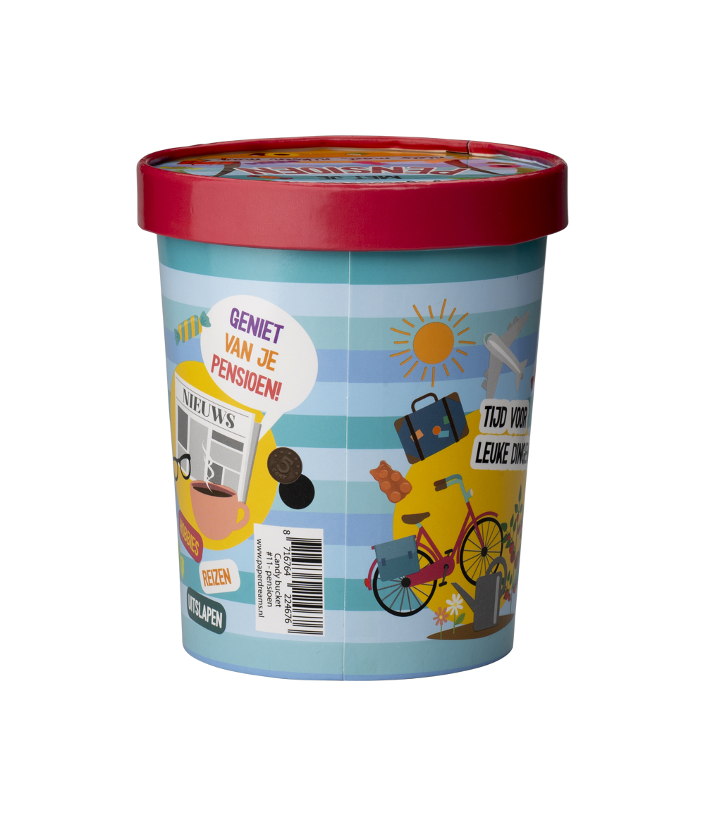 De muntre slikspande er et rigtigt blikfang i butikken. Blandt andet på grund af det sjove design er denne slikspand meget rar at få. Slikspandene er lavet af pap!