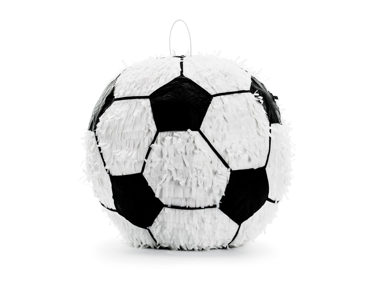 Indhold: Pinata i form af fodbold i farven hvid med sorte elementer, til ca. at fylde med godbidder, størrelse. 35 x 35 x 35 cm