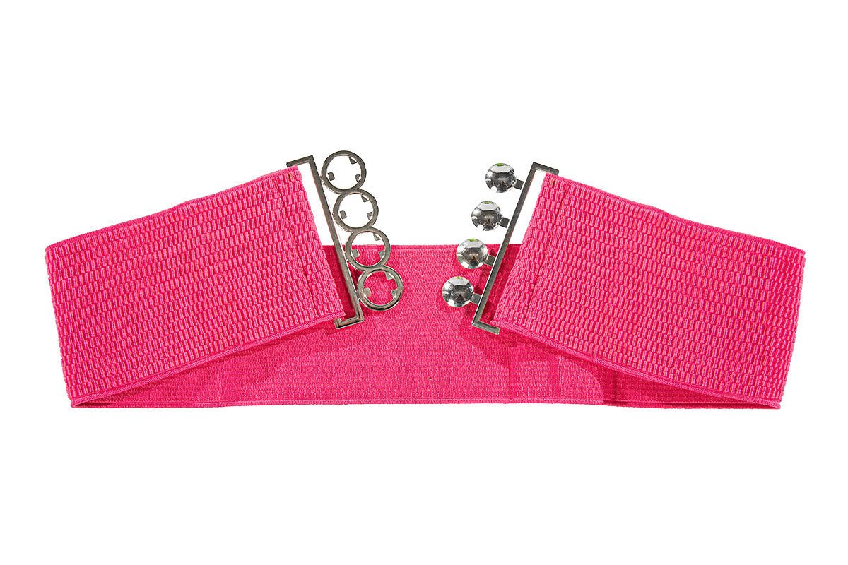 Sødt elastisk bælte i pink med sølvfarvet spænde. Perfekt som tilbehør til fester, temabegivenheder eller udklædningstøj.