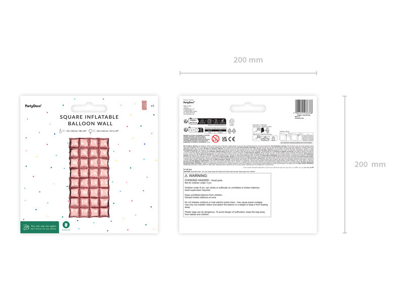 Baggrund af ballonfolie i rosa guldfarve. Størrelse før opblæsning ca. 72x143 cm. Størrelse efter oppustning 55x110 cm. Pustes op med luft. Sættet indeholder sugerør.