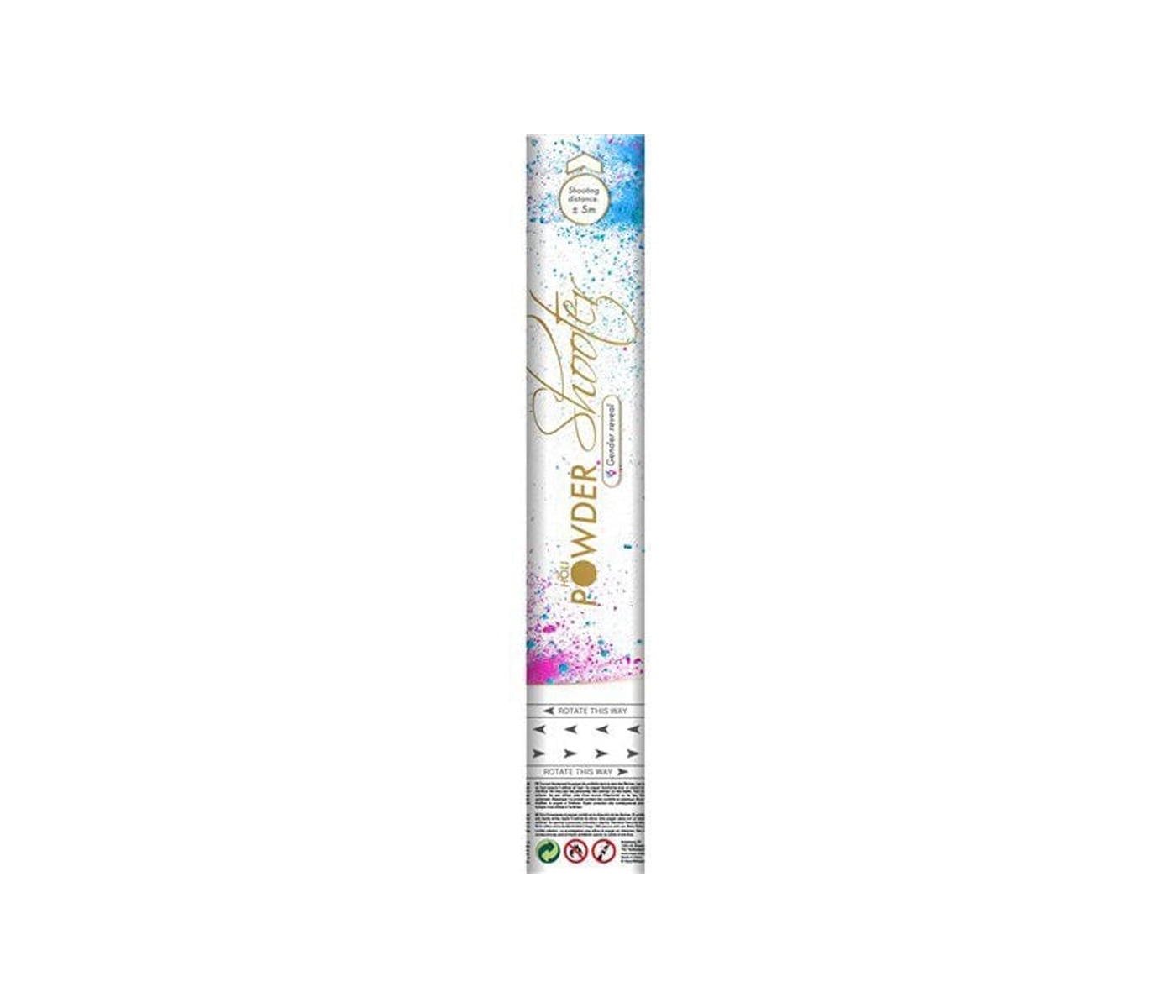 Holi-pulverskyder i farven pink. Blandt andet velegnet til kønsafsløringsfester.