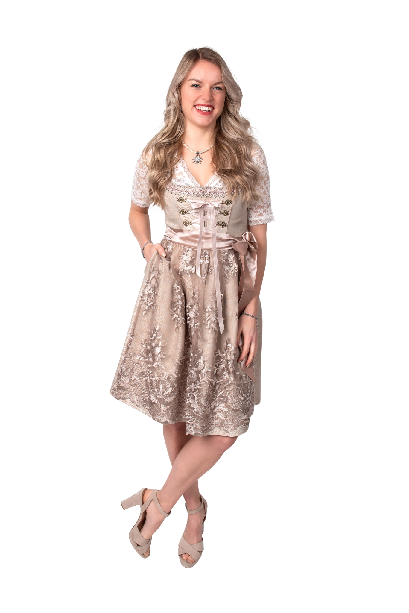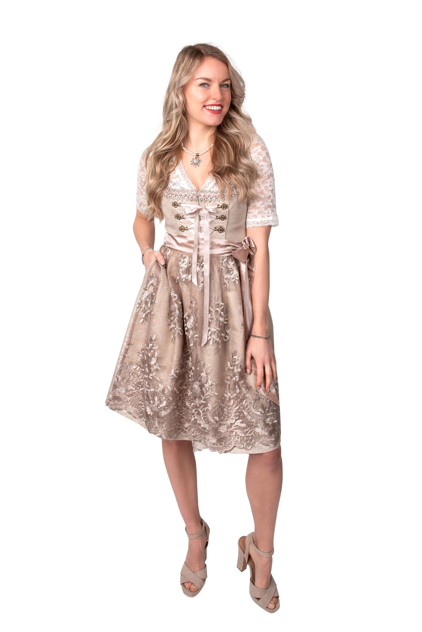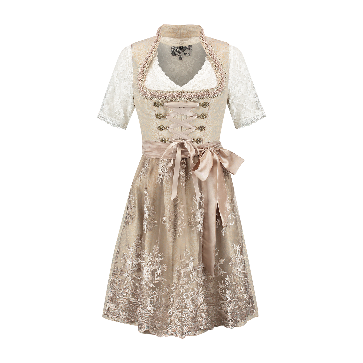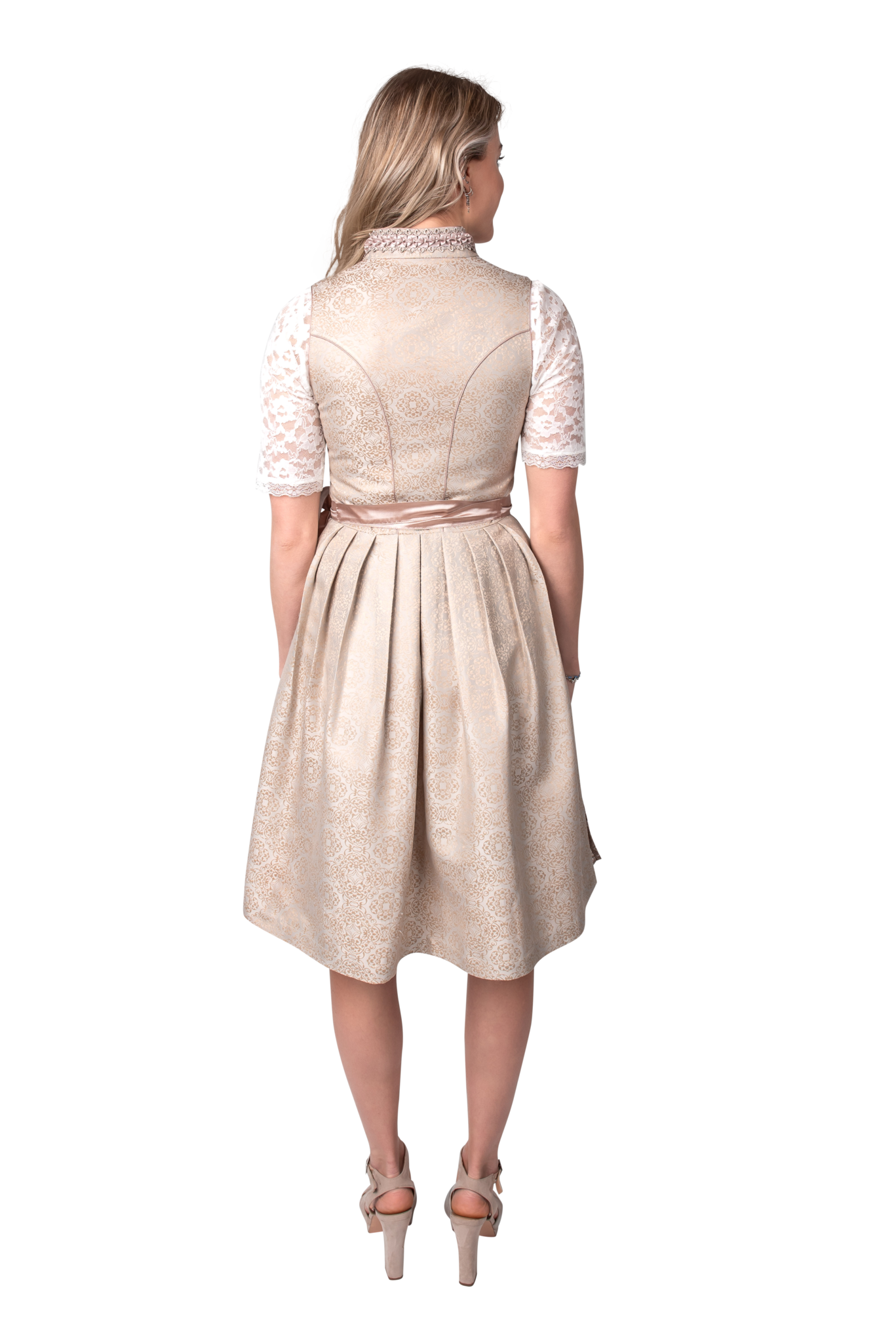 Pink White Creme Dirndl Dress Oktoberfest Women Jaquard