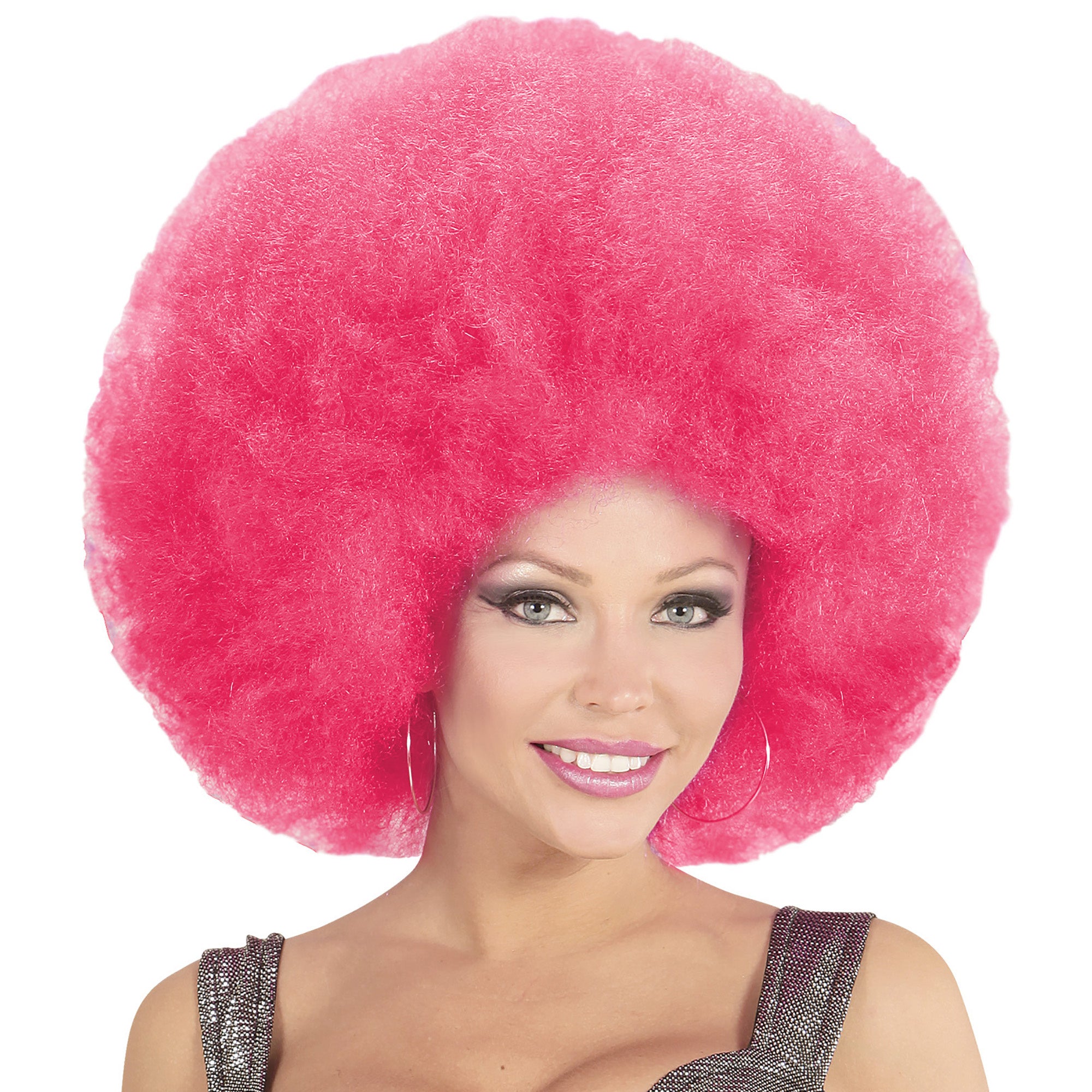 Lyserød paryk afro ekstra stor