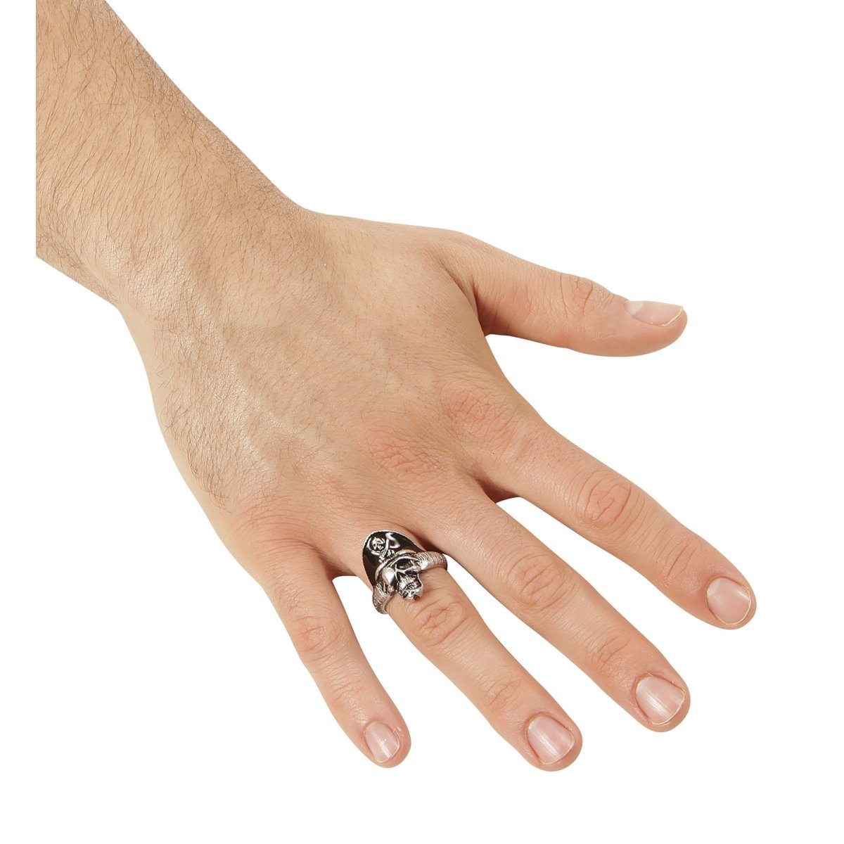 Beskrivelse Anmeldelser Om dette produkt Beskrivelse: piratkaptajn kranie ringMateriale: 100% zink Trustpilot