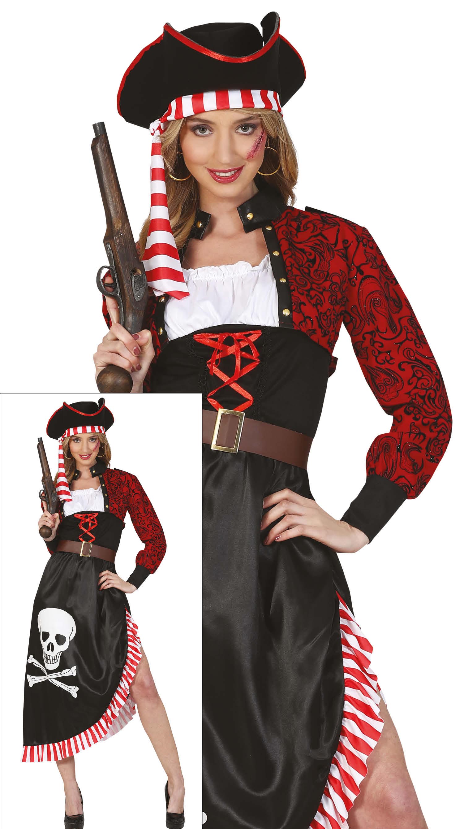 Piratkjole rød sort dame