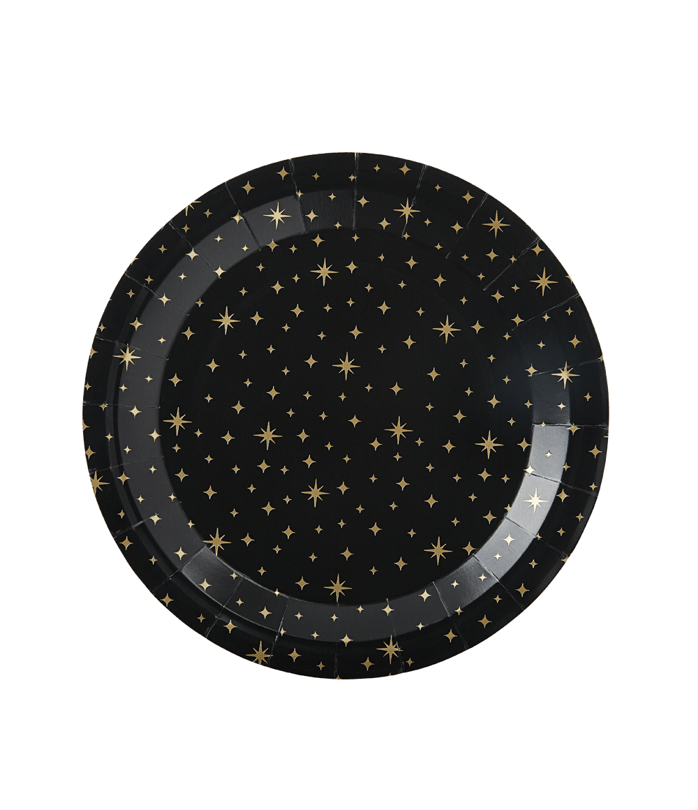 Tallerkener Guldstjerner Sort 20cm 8stk