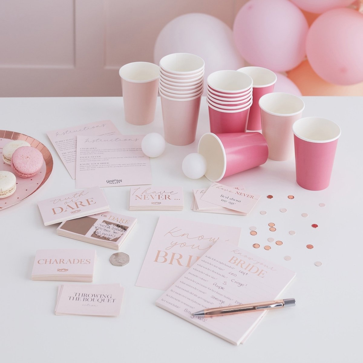 Hver pakke indeholder 5 sjove spil pong-spil never have I ever them charades truth or dare og how well do you know the bride og vil helt sikkert give timevis af endeløs sjov for den kommende brud og hønen!
