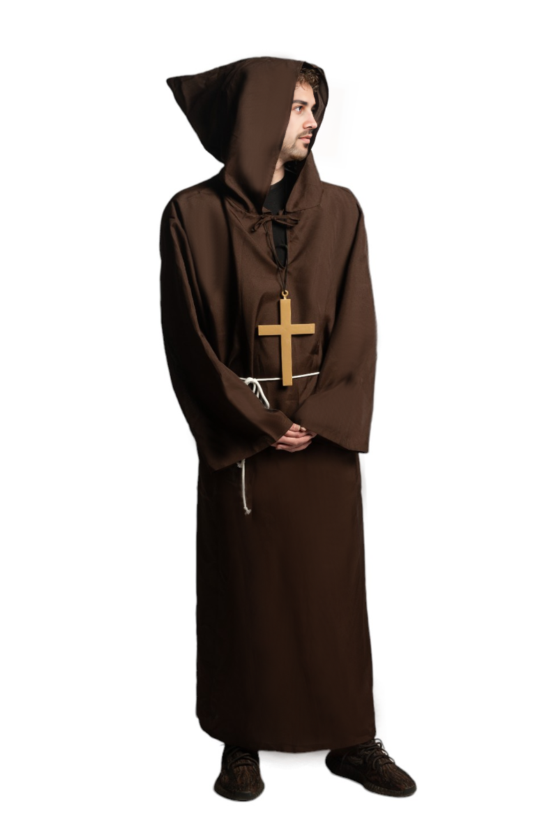 Dette brune præstekostume til mænd er en klassisk og genkendelig udklædning til karneval, udklædningsfester og kostumefester.