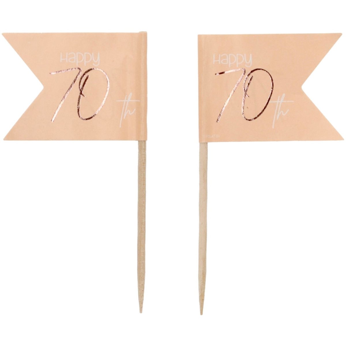 Pickers Elegant Lush Blush 70 Years - 36 stk. Indhold: 36 sticks. Farve: Pink. Kan f.eks. bruges til følgende fester/anledninger: Fødselsdag, jubilæum. Mål: 6,5 cm høj. Varen er fremstillet af bambus.