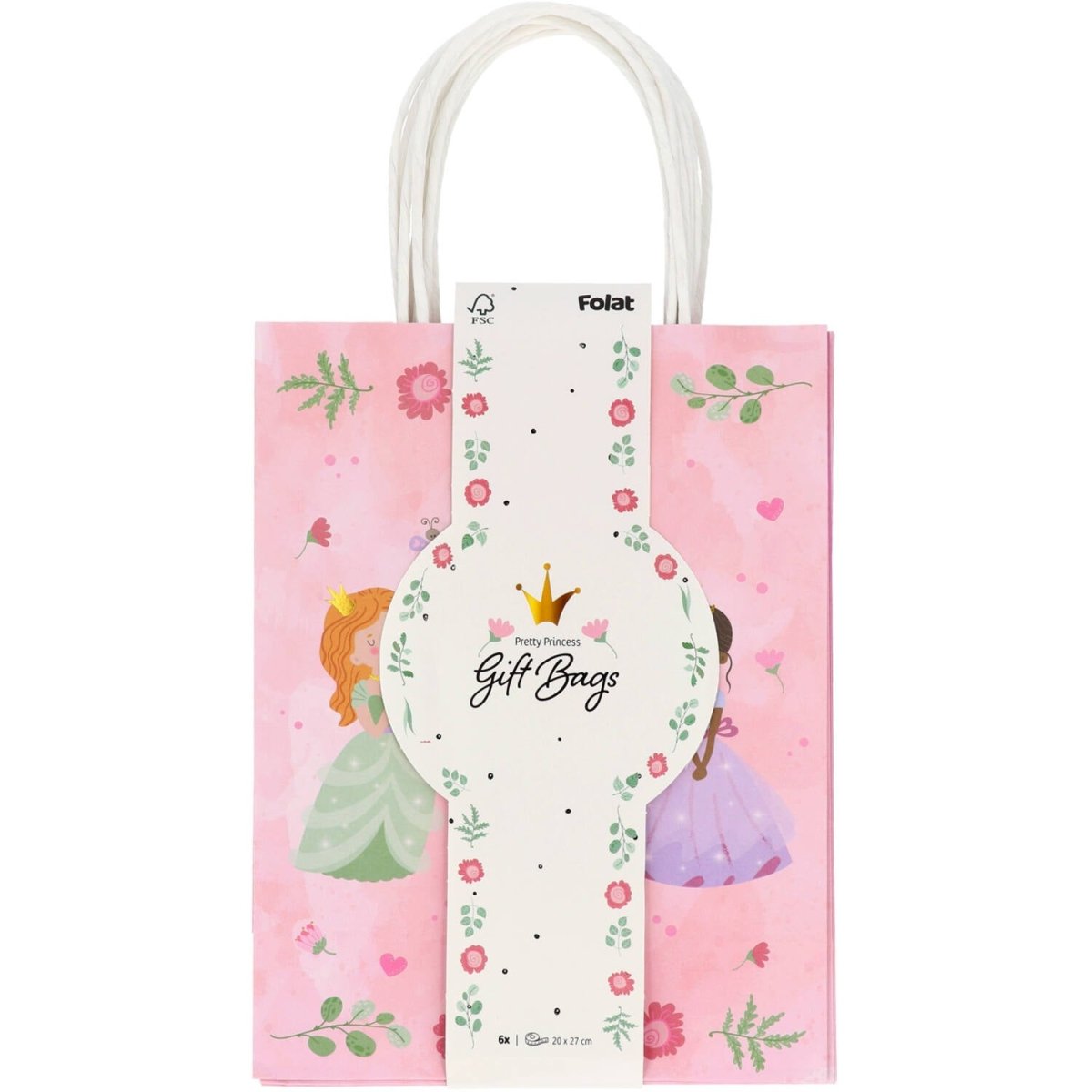 Til royale gaver. Gaveposer - Pretty Princess - 20 x 27 cm - 6 stk. Indhold: 6 gaveposer. Kan f.eks. bruges til følgende fester/anledninger: Børnefødselsdag, fødselsdag. Smukke gaveposer, der måler 20 x 27 x 10 cm. Sart rosa med to prinsesser og teksten "HAPPY BIRTH DAY" på den ene side og et slot med to prinsesser på den anden side. Inklusive hank er poserne ca. 37 cm høje. Med gulddetaljer, der virkelig funkler takket være den anvendte hot-stamping-teknik. Disse gaveposer hører til Pretty Princess-kollektionen fra
