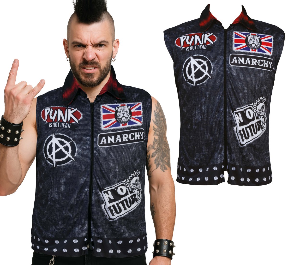 Giv dit outfit et cool og rebelsk look med denne sorte punkvest. Ideel til temafester, koncerter, karneval eller som et iøjnefaldende tilbehør til enhver punk- eller rockstil.