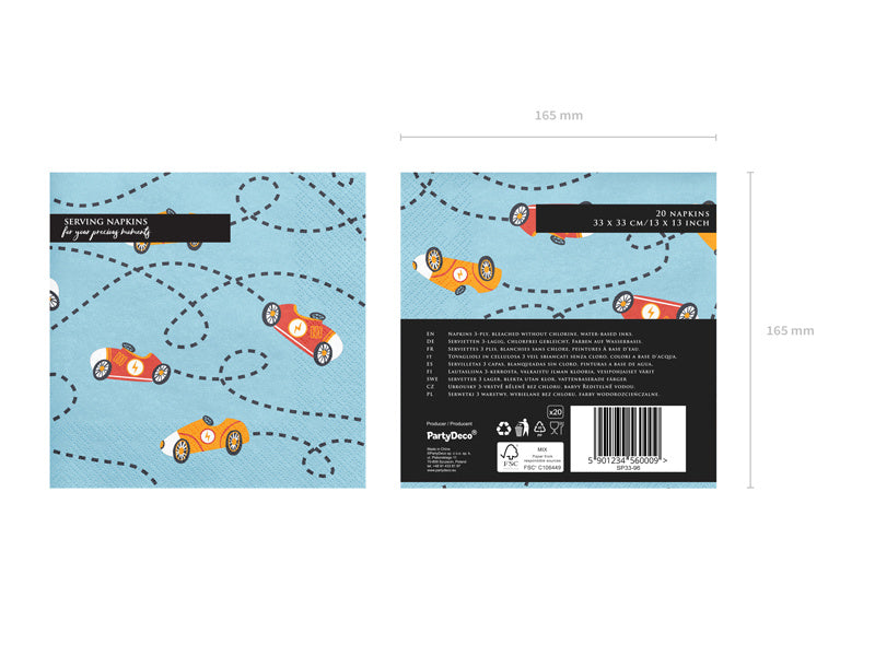 Papirservietter Cars, farvemix, størrelse efter udfoldning ca. 33 x 33 cm, størrelse efter foldning ca. 16,5 x 16,5 cm. (1 pk/12 stk.)