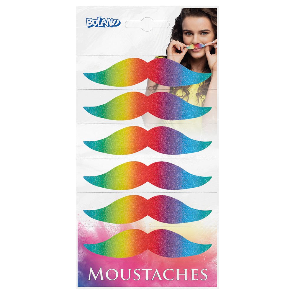 Regnbuefarvet falsk overskæg Fantasy 6stk