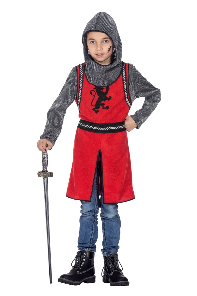 Ridderkostume grå rød dreng 2 dele