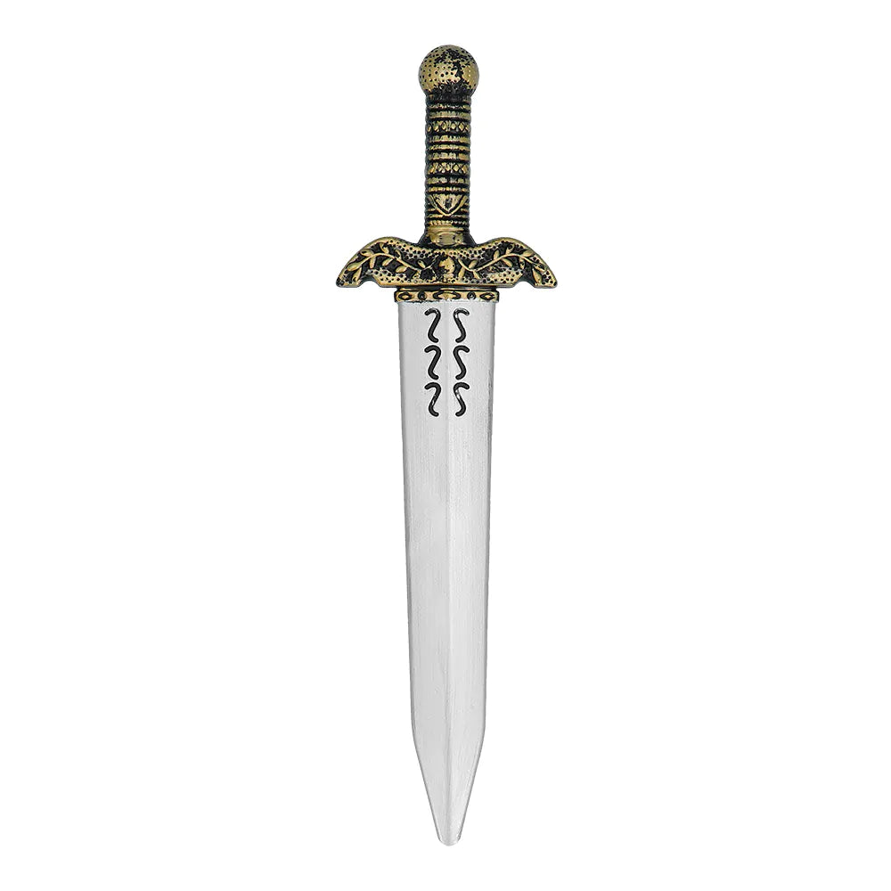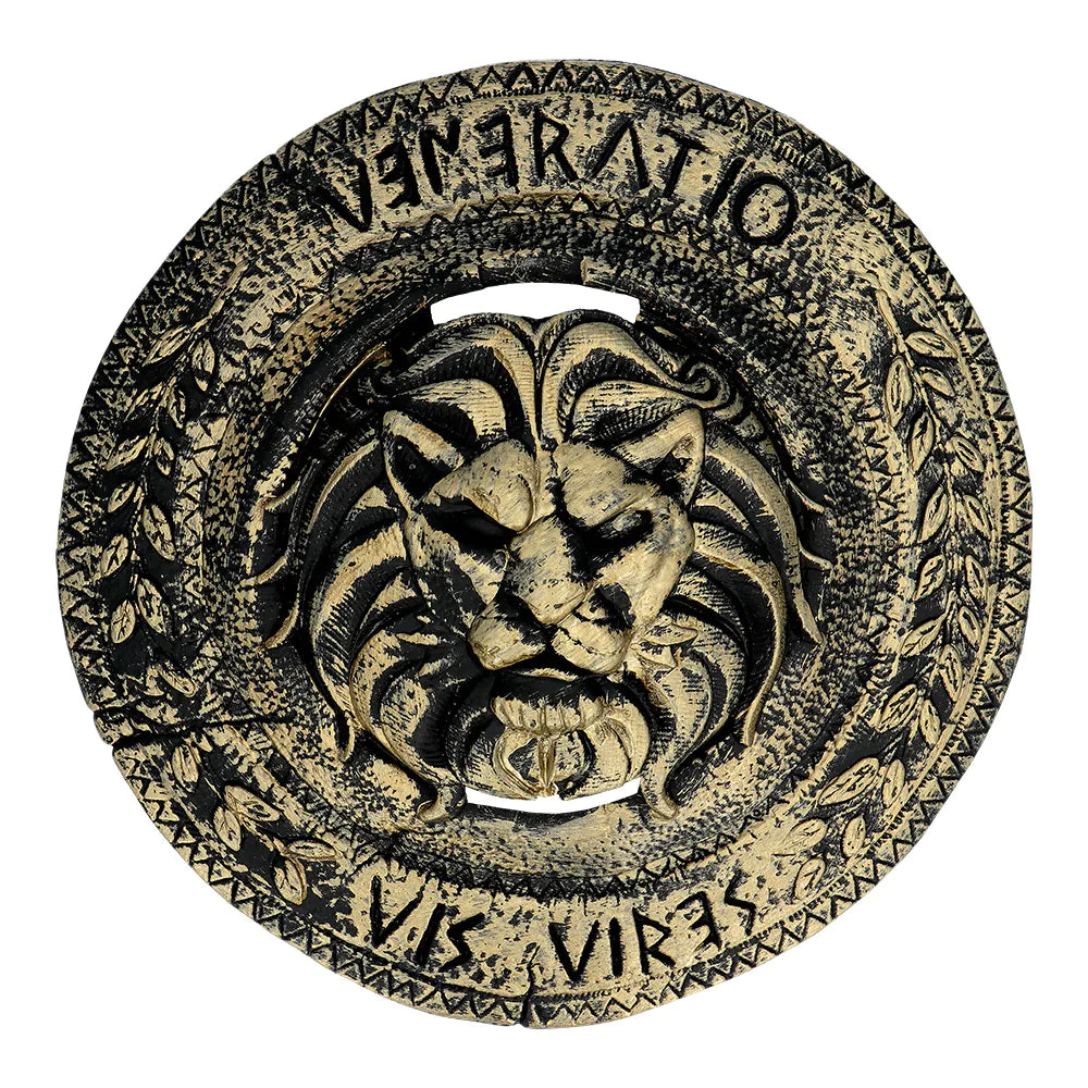 Et sejt 2-delt våbensæt, som alle børn vil blive begejstrede for. Sættet består af et sværd med gyldent håndtag og et matchende gyldent skjold med løvehoved. Et fantastisk tilbehørssæt til at fuldende et sejt ridder-, vikinge- eller romersk gladiatorkostume til karneval. Også meget flot som gave!