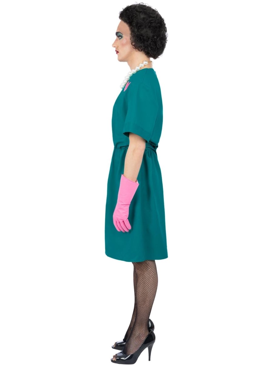 Med dette Frank N. Furter Surgical-kostume skaber du et slående og genkendeligt outfit fra Rocky Horror Show. Sættet med kjole, handsker og halskæde giver et komplet, legende og stilfuldt look.