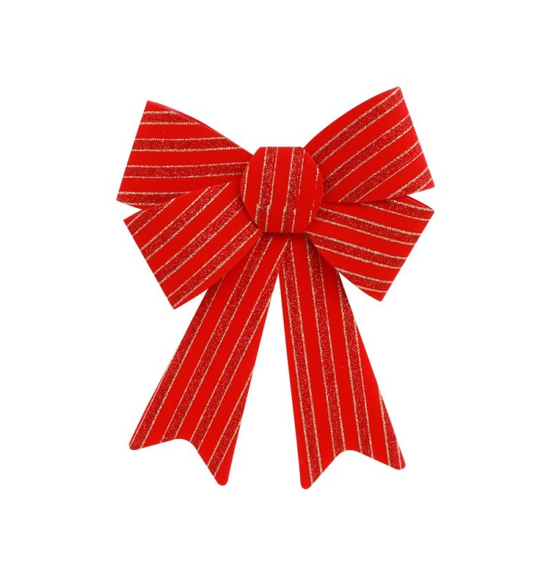 Giv gaver og dekorationer et luksuriøst look med denne store rødgyldne sløjfe med striber. Det robuste materiale sikrer, at sløjfen holder sin form og skinner smukt, hvilket gør den perfekt til højtider, fødselsdage eller særlige lejligheder.