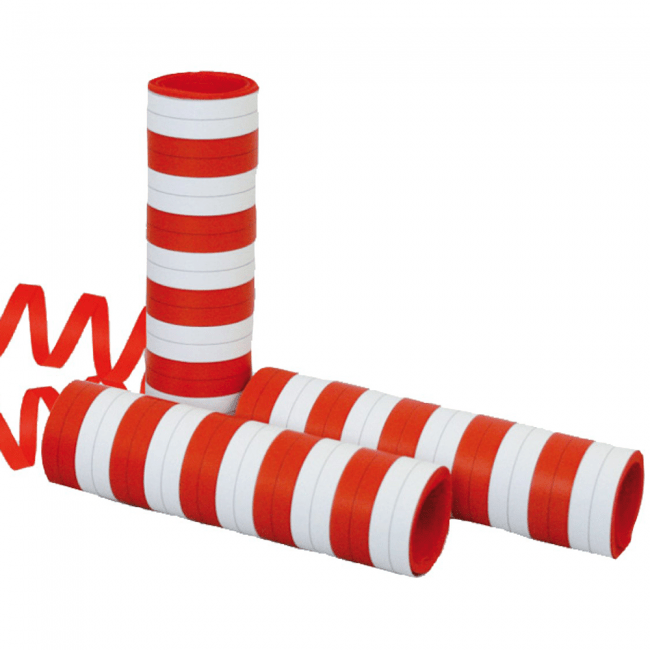 Emballageindhold: Rød hvid serpentin 4m 20 ringe