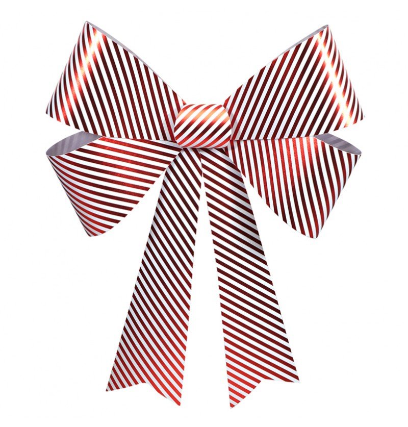 Giv dine dekorationer et muntert og festligt præg med denne ekstra store PVC-sløjfe med slikstriber. Den generøse størrelse og de klassiske røde og hvide striber gør denne sløjfe perfekt til julepynt, gaver eller festdekorationer.
