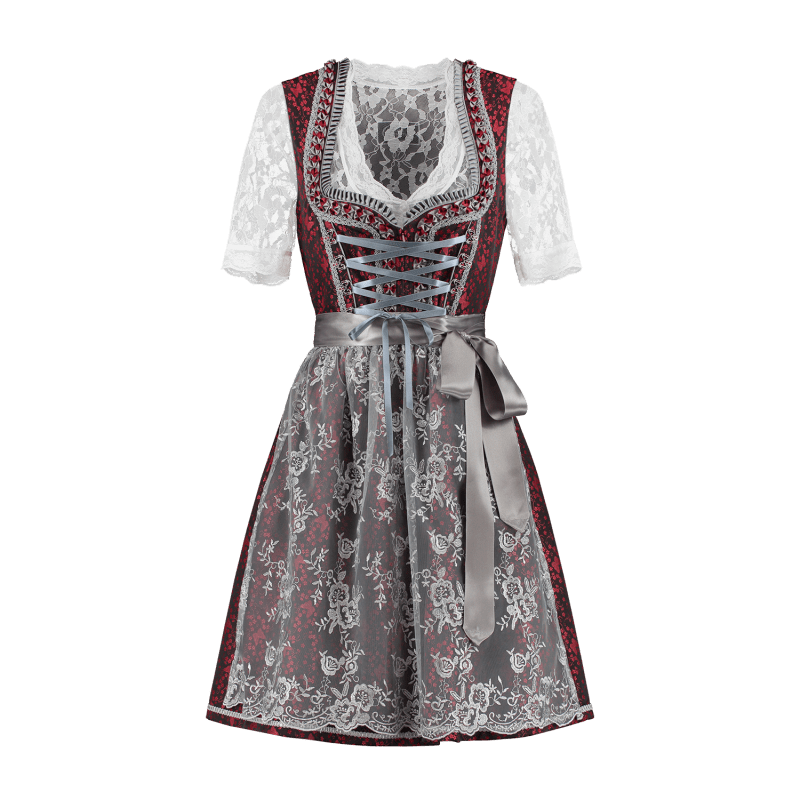 Rød sølv dirndl-kjole Oktoberfest 2 dele