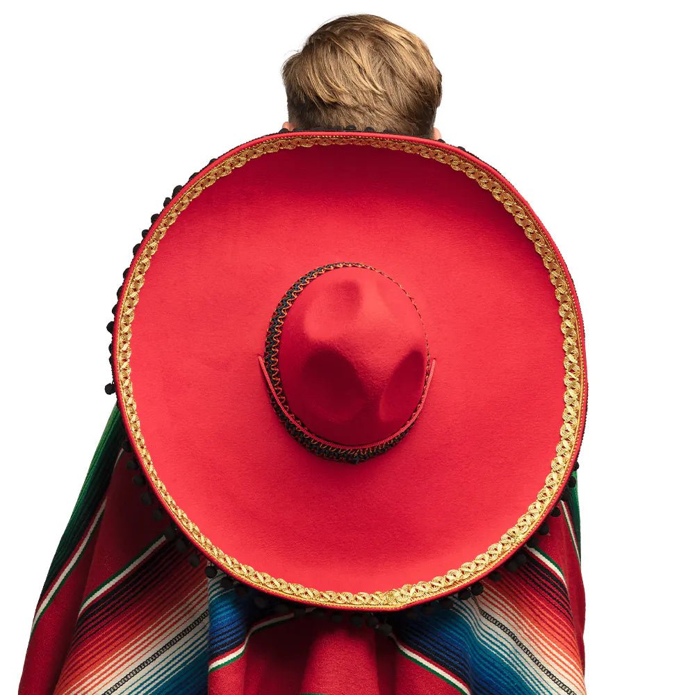 Bring et strejf af mexicansk flair til den næste fest med denne markante røde sombrero! Denne klassiske hat med sin brede skygge, levende røde farve og traditionelle broderi er det perfekte tilbehør til karneval, udklædningsfest eller sommerfest.