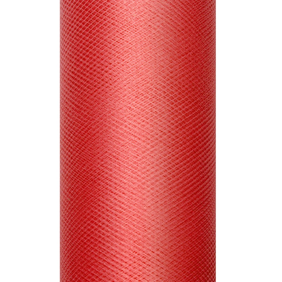 Indhold: Tyl Plain, rød, på rulle, størrelse 0,15x9 meter. (1 stk/9 lm)