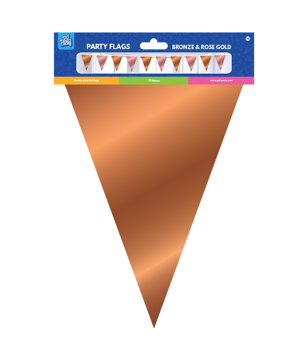 Ingen fest uden flag, og hvis du køber disse festflag i folie, får du med det samme en flagline med en unik farvekombination! Flagene er lavet af folie, og flaglinen er 10 meter lang.
