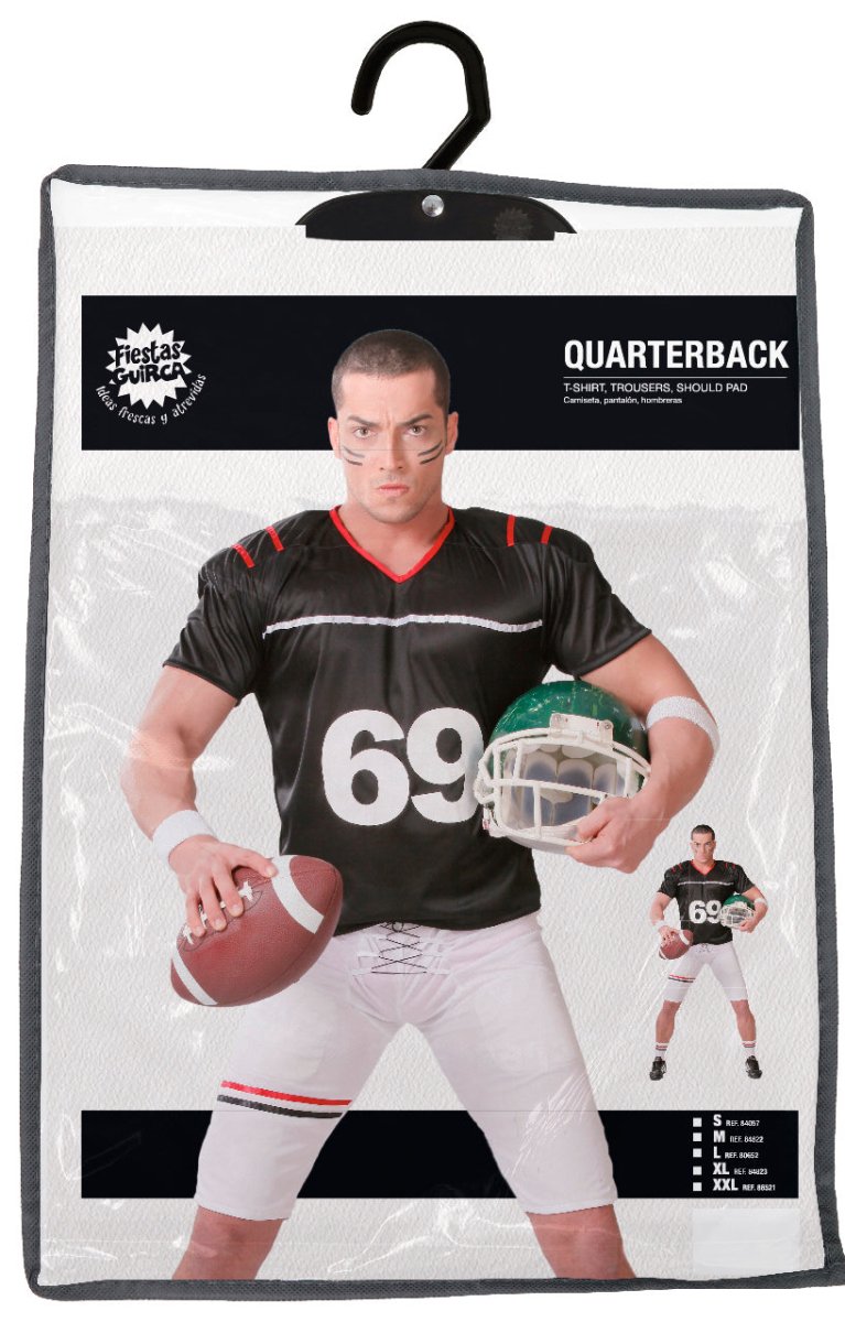 Indeholder: amerikansk fodboldtrøje, shorts og skulderpuder