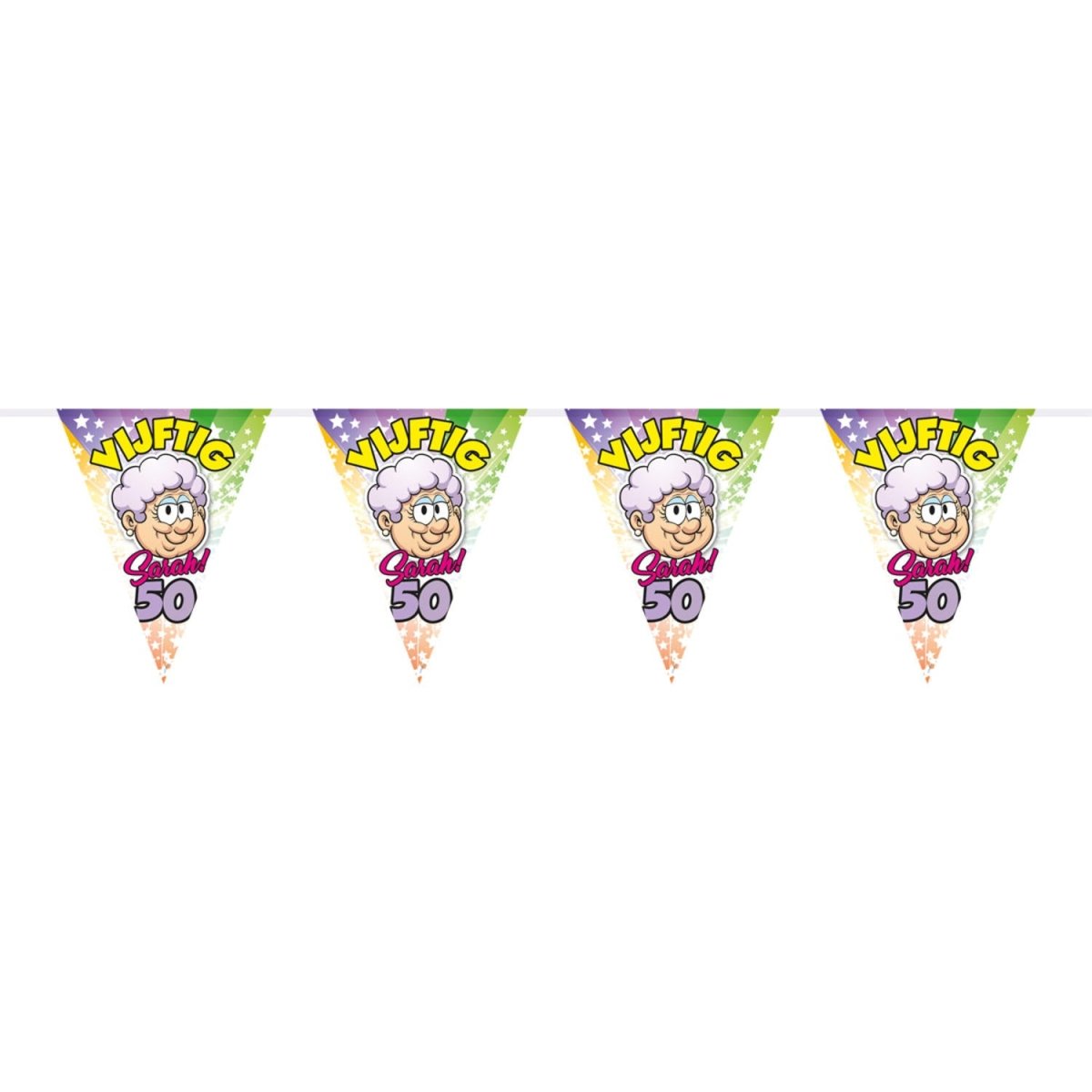 50 års Sarah Rainbow Flagline - 10 meter. Indhold: 1 flagline. Farve: Flerfarvet. Produkttema: Sarah Regnbue. Kan f.eks. bruges til følgende fester/anledninger: fødselsdag, Sarah. Denne guirlande er 10 meter lang. Varen er fremstillet af plast.